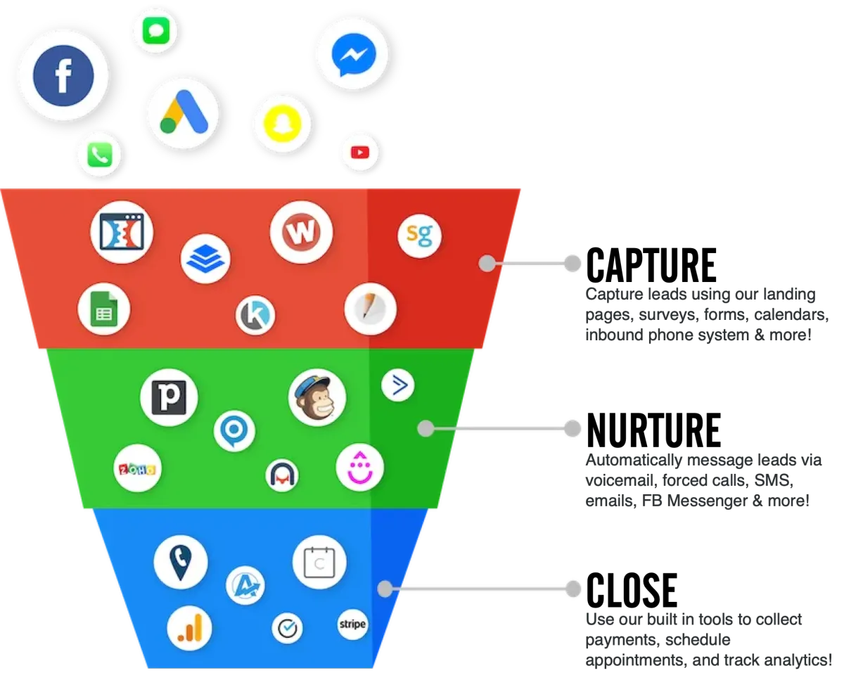 HighLevel allows you to connect with your leads through Phone Connect, Voicemail Drops, SMS/MMS, Emails, and even Facebook Messenger.