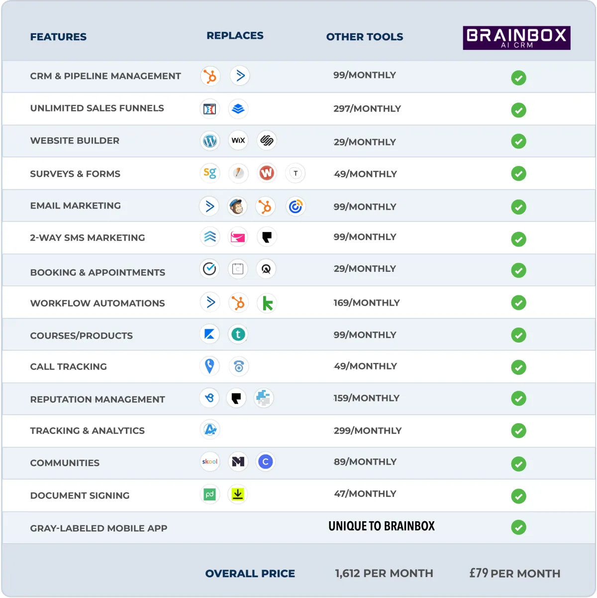 The Brainbox Platform is everything that marketers need to manage their leads, websites, funnels, calendars and many other services that are needed to maintain a customer.